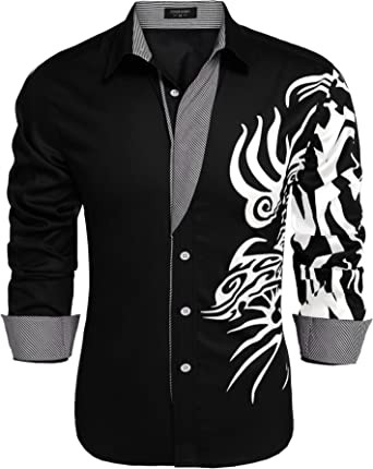 COOFANDY Men's Print Button Down Dress Shirt Fashion Long Sleeve Casual Shirts