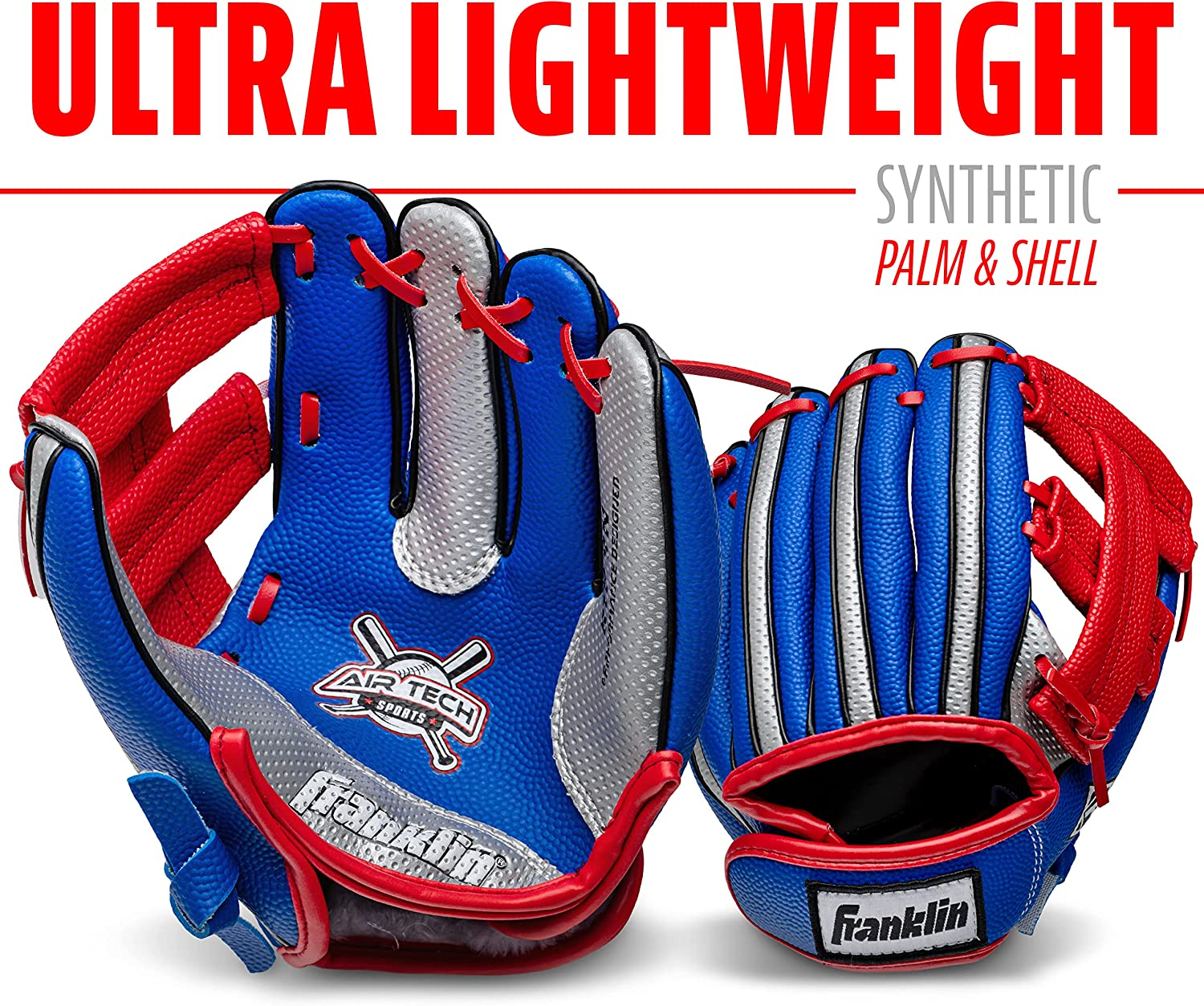 Franklin Sports Kids Baseball Glove + Ball Set - Air Tech Youth Teeball Glove - Boys + Girls Children's Glove + Ball - Right Hand Throw - Red/Blue - 9"